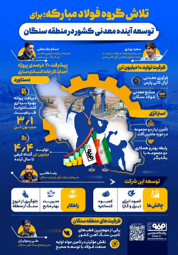 فولادینفو: تلاش گروه فولاد مبارکه برای توسعه آینده معدنی کشور در منطقه سنگان