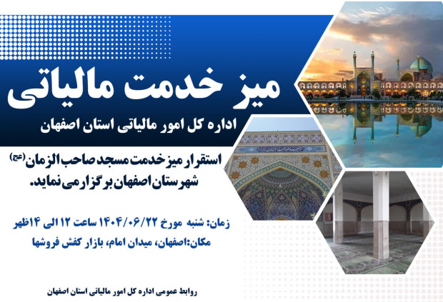استقرار میز خدمت مسجد صاحب الزمان (عج) شهرستان اصفهان برگزار می نماید.