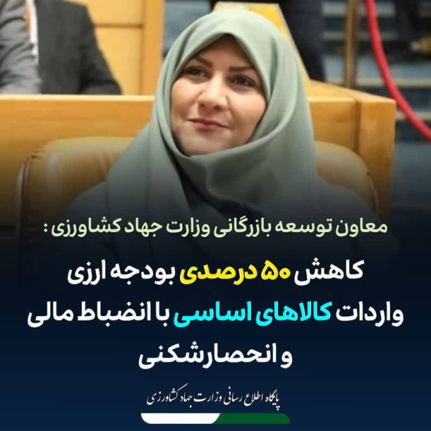 "بودجه ارزی وزارت جهاد برای تأمین کالاهای اساسی از ۱۶ میلیارد دلار به ۸ میلیارد دلار کاهش یافته است.