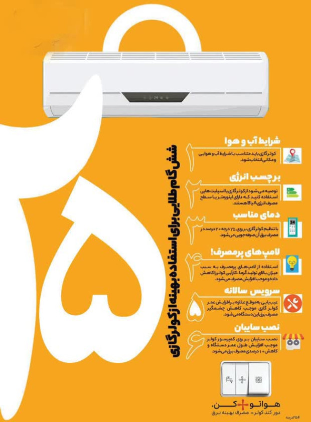 با تنظیم دمای کولرهای گازی بر روی ۲۵ درجه و بالاتر در مناطق گرمسیر و استفاده از دور کند کولرهای آبی در مناطق معتدل استان، تابستان گرم امسال را با انرژی پایدار سپری کنیم.