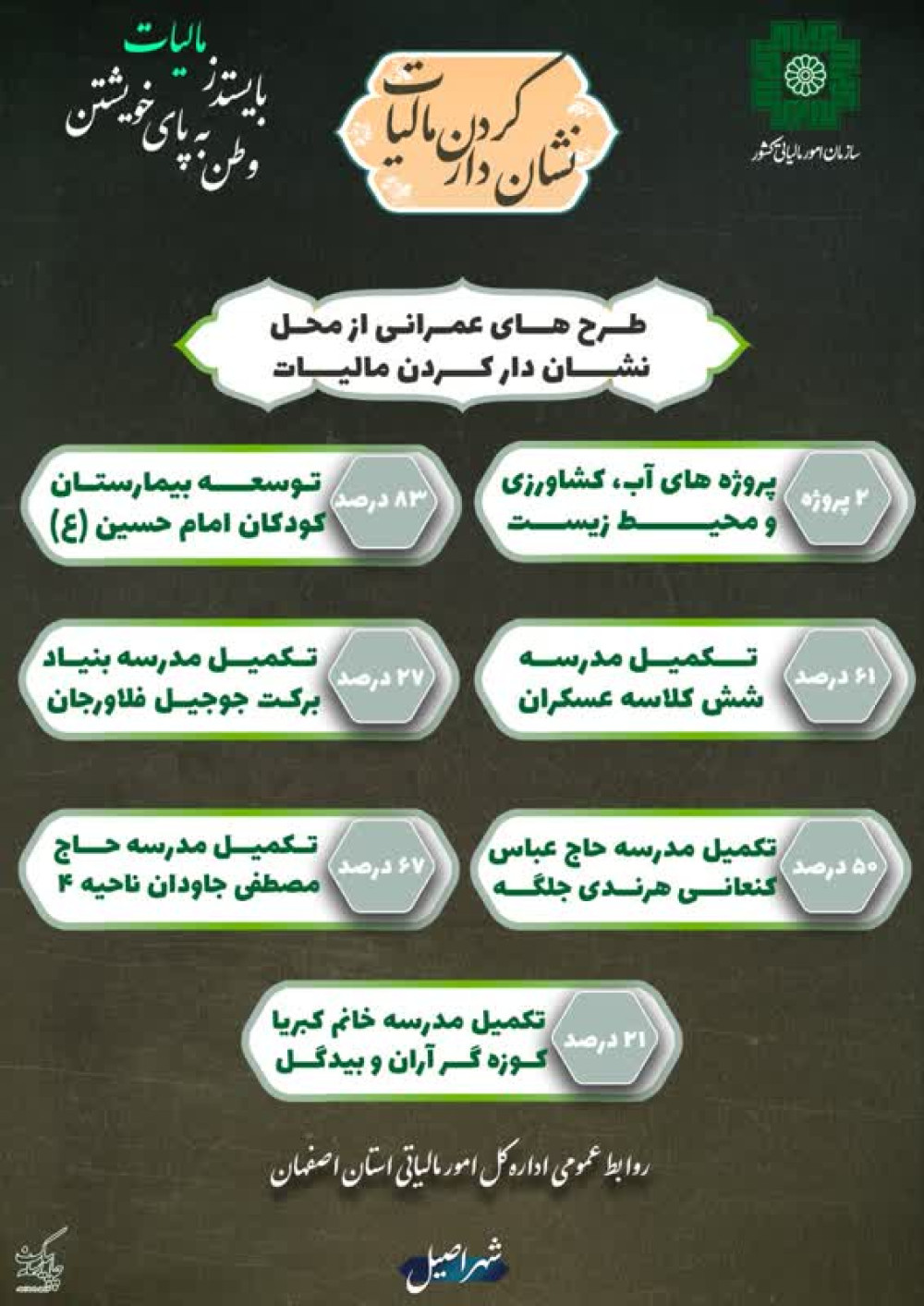 به گزارش پایگاه خبری شهر اصیل و به نقل از رسانه مالیاتی ایران، سید محمد هادی سبحانیان رئیس کل سازمان امور مالیاتی کشور روز چهارشنبه شانزدهم مهرماه طی سفر دو روزه کاری به استان اصفهان با آیت الله یوسف طباطبایی نژاد نماینده ولی فقیه در استان و امام جمعه اصفهان، مجمع ...