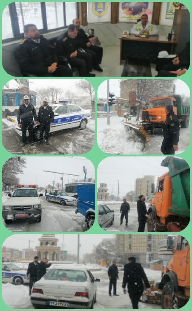 در پی بارش برف در معابر درون‌شهری، مأموران پلیس راهور با حضور به‌موقع، نسبت به روان‌سازی ترافیک و پیشگیری از ایجاد گره‌های ترافیکی اقدام کردند.