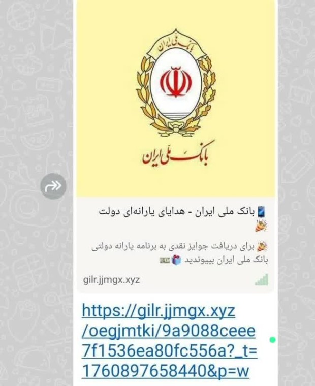 از ساعاتی پیش یک لینک از جانب بانک ملی تحت عنوان هدیه به مردم دست به دست شده و در گروه ها انتشار پیدا کرده تحت هیچ شرایطی این لینک و باز نکنید که حساب های شما هک خواهد شد.