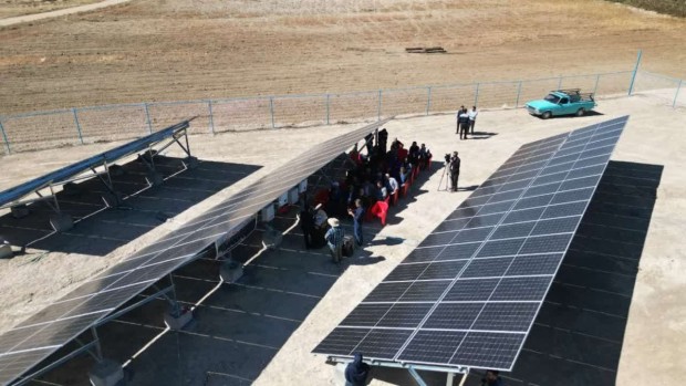 نخستین مزرعه خورشیدی ۱۵ میلیارد ریالی بر روی چاه کشاورزی در بویین میاندشت افتتاح شد
