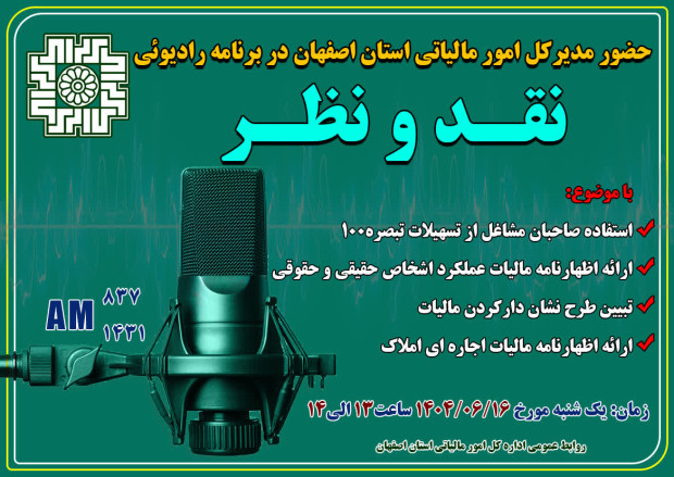 درراستای اطلاع رسانی مباحث مالیاتی از طریق برنامه رادیوئی نقد ونظر