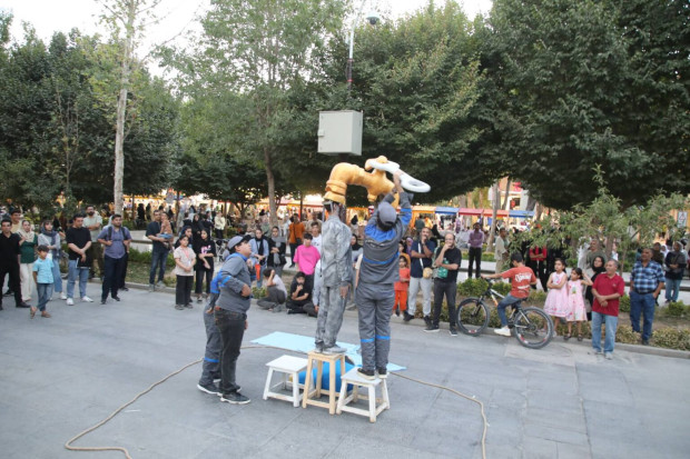 نمایش خیابانی «مدال اصفهانی‌ها» با دستمایه طنز به موضوع مدیریت مصرف آب پرداخت و به همین دلیل مردم علاقه مند دور بازیگران حلقه زده تا از موضوع آن که محوریت و تعادل زندگی با آب است با خبر شوند.