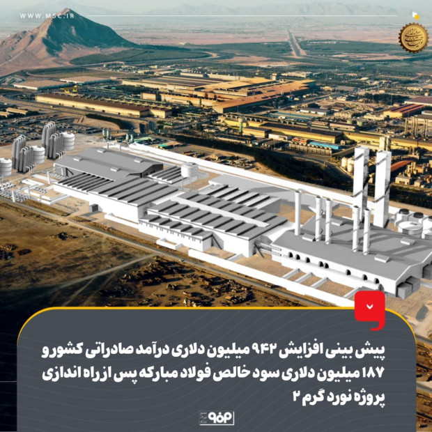 پیش بینی افزایش ۹۴۲ میلیون دلاری درآمد صادراتی کشور و ۱۸۷ میلیون دلاری سود خالص فولاد مبارکه پس از راه اندازی پروژه نورد گرم ۲